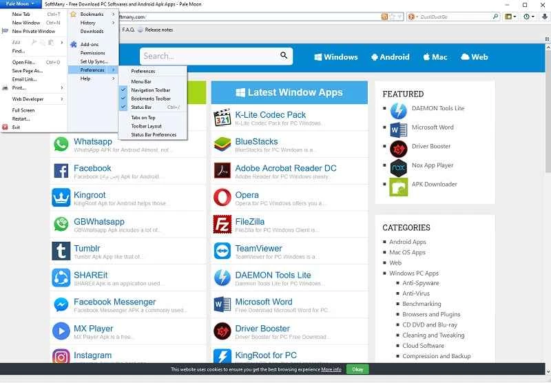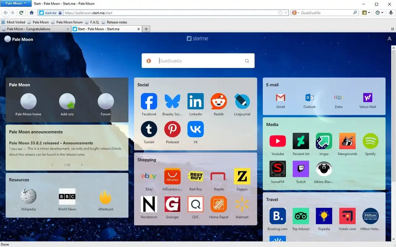 Pale Moon完美融合了自定义性、稳定性和速度,正如其“你的浏览器,你的方式”的理念。它源自Mozilla Firefox,并经过精心挑选和优化,但主要区别在于运行模式:Firefox采用多进程模式,而Pale Moon则采用单进程模式。它目前使用Goanna浏览器引擎,并与start.me合作提供可自定义的起始页。默认搜索引擎是DuckDuckGo,而非Google或Yahoo。同样,它使用IP API服务,而非Google的地理位置引擎。